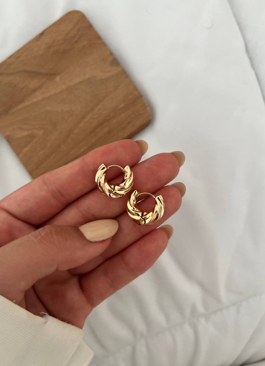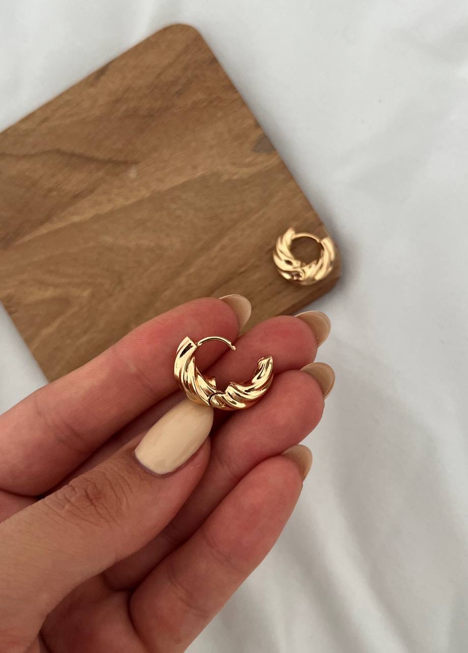 گوشواره طلایی ریز طرح دار از برند ژوپینگ که مشابه طلا میباشد.ضداب و ضدحساسیت میباشد و برای استفاده روزانه مناسبه.
