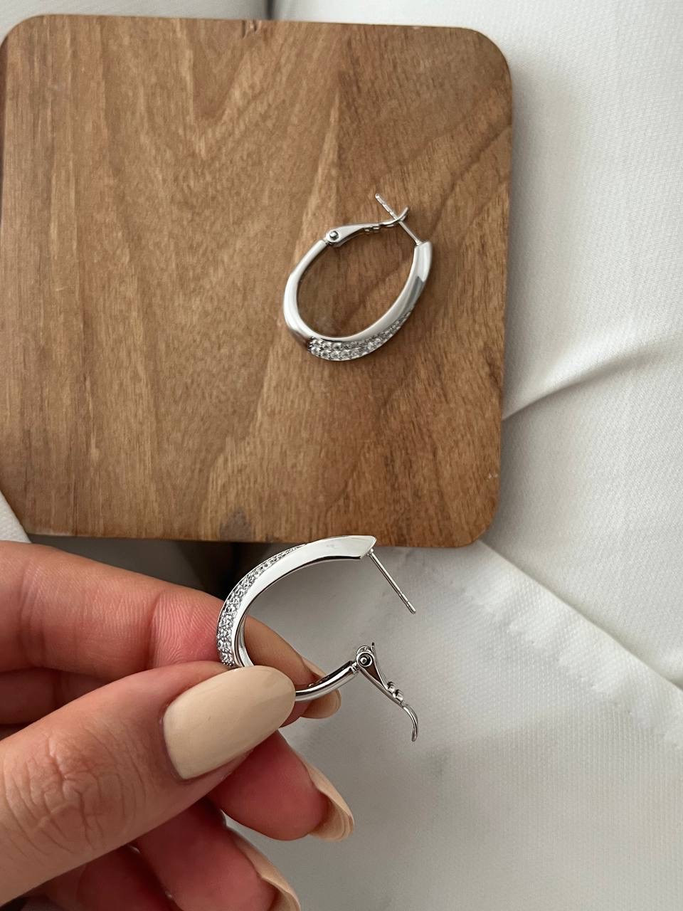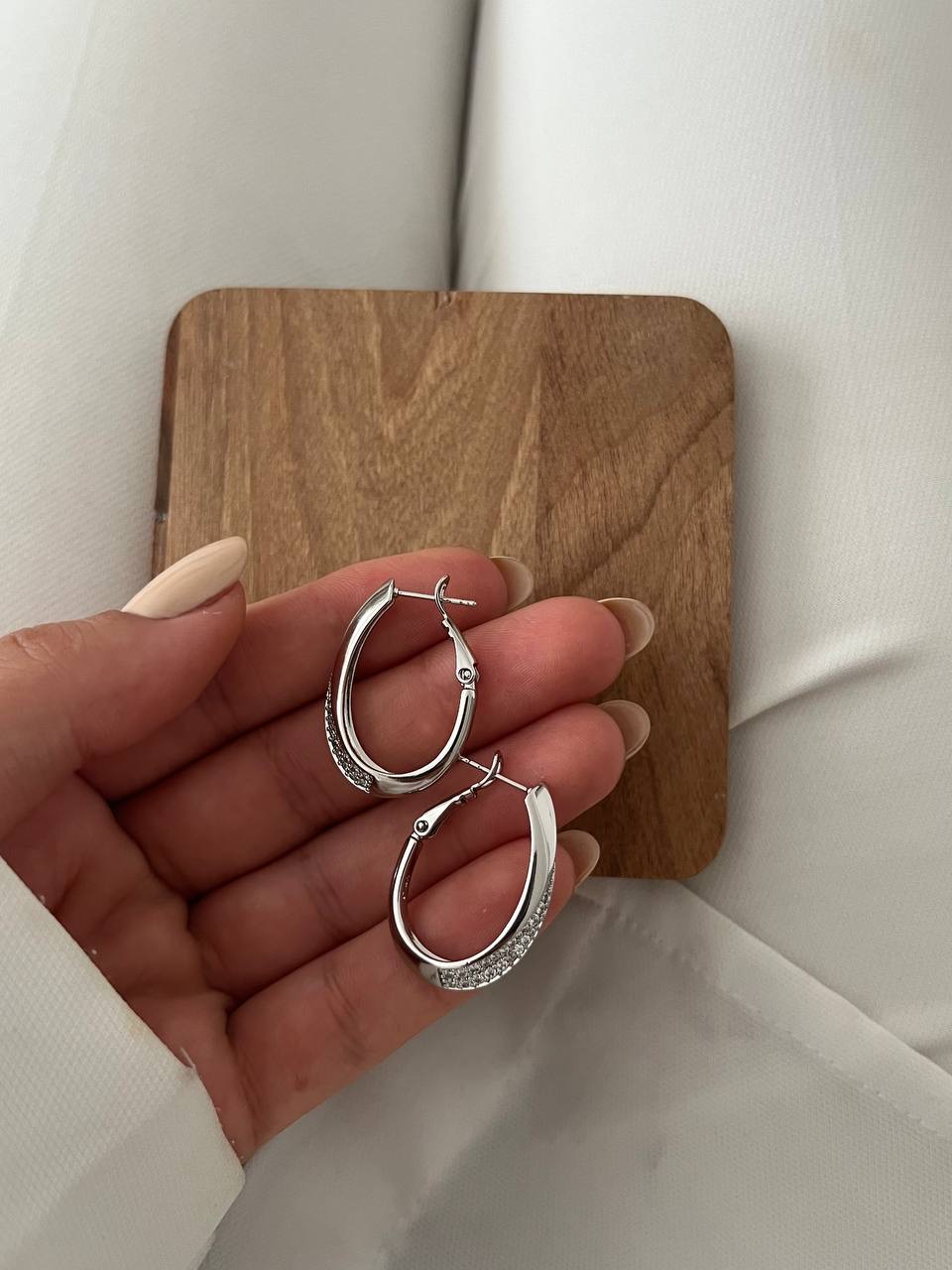 گوشواره سیلور بغل نگین از برند ژوپینگ که ضداب و ضدحساسیت است.مناسب استفاده روزانه و بسیار سبک.