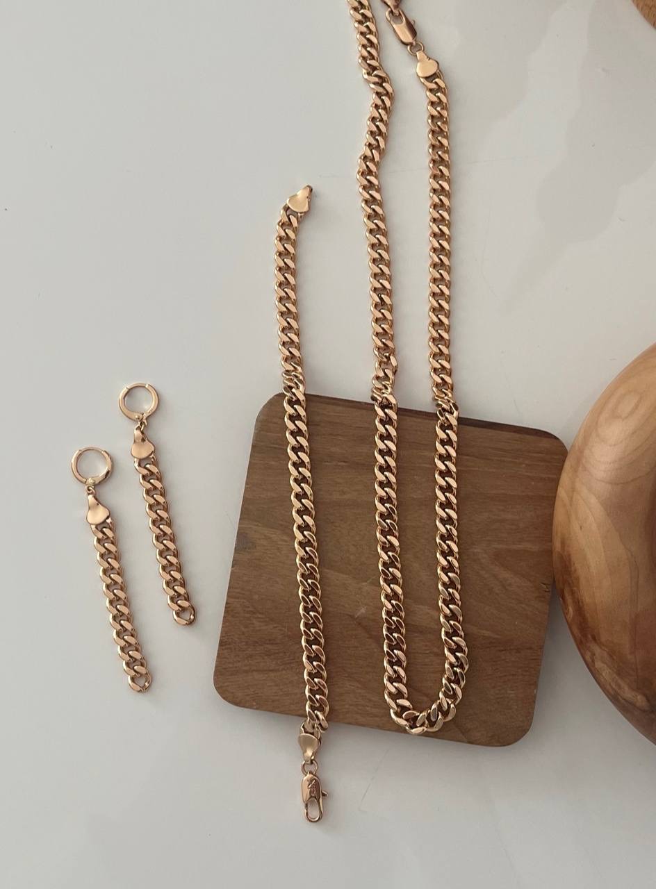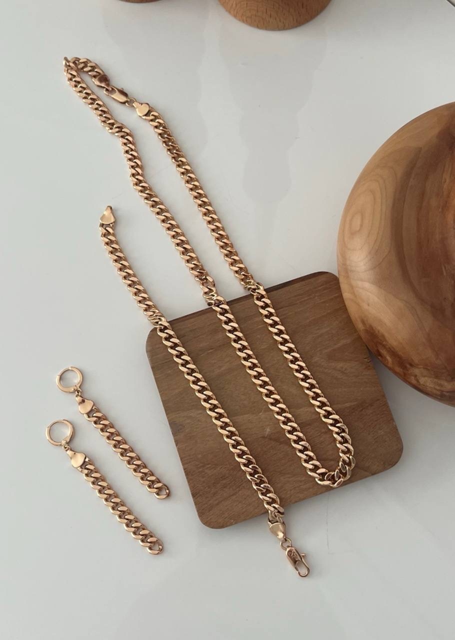 نیمست کارتیر بدلیجات که از برند ژوپینگ و ضدحساسیت است.شامل گردنبند دستبند و گوشواره است.مشابه طلا و قابل استفاده روزانه.