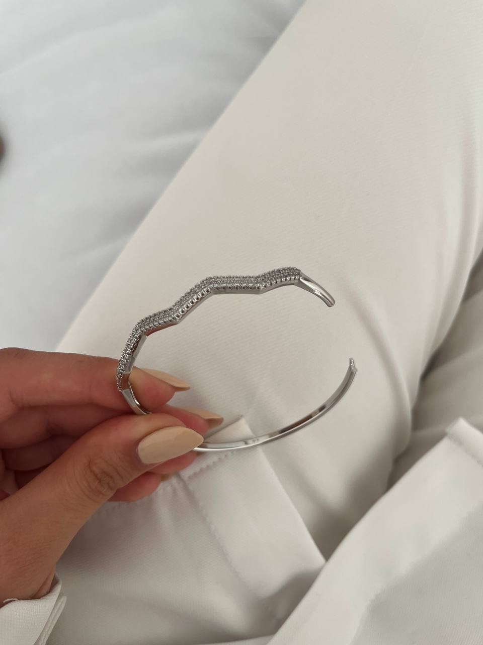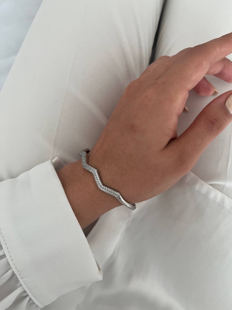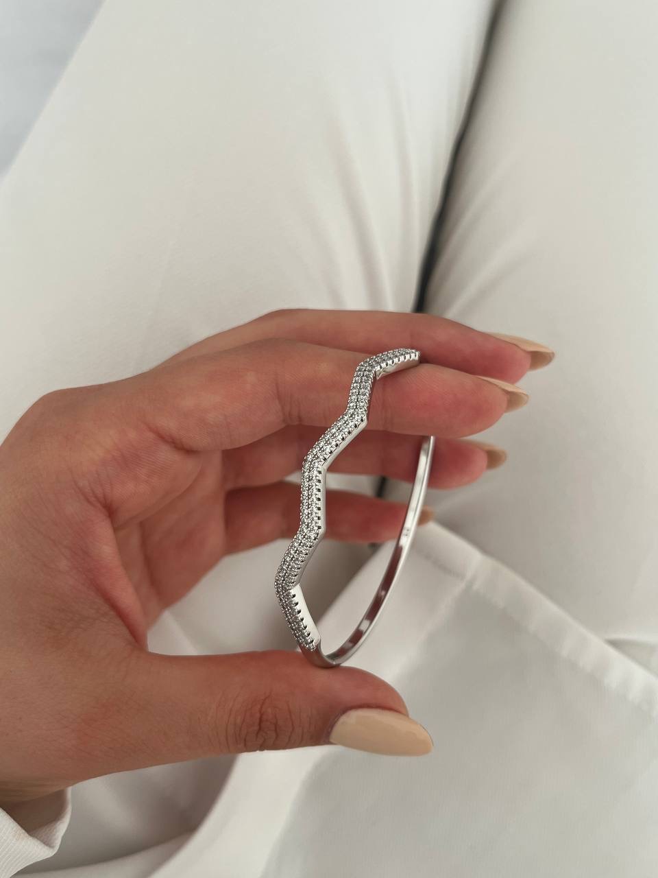 بنگل نگینی سیلور ژوپینگ که ضداب و ضدحساسیت است.مناسب استفاده روزانه میباشد.بازو بسته میشود و مناسب مچ های طریف و متوسط است.