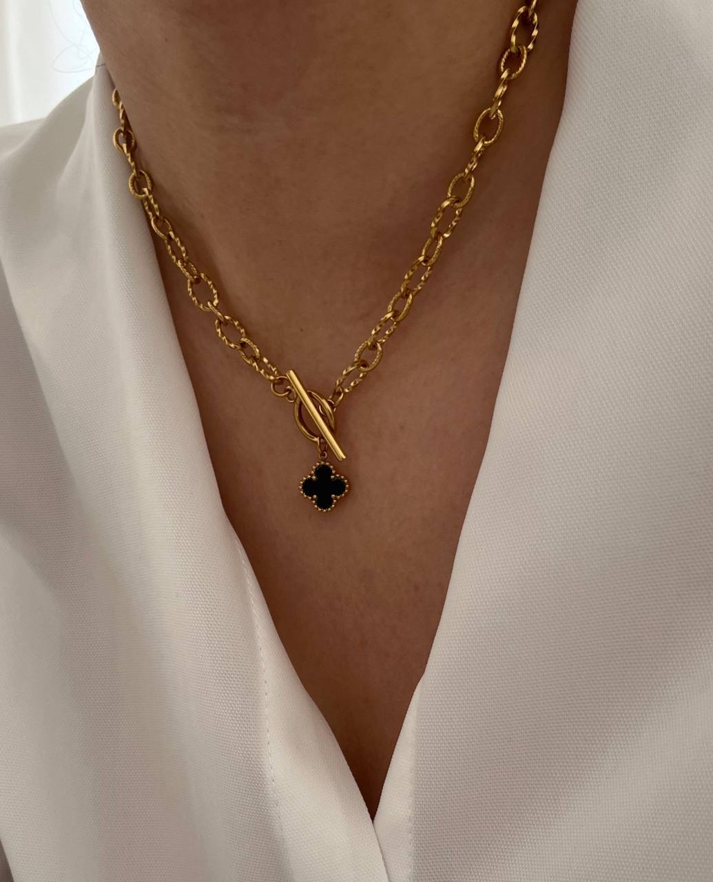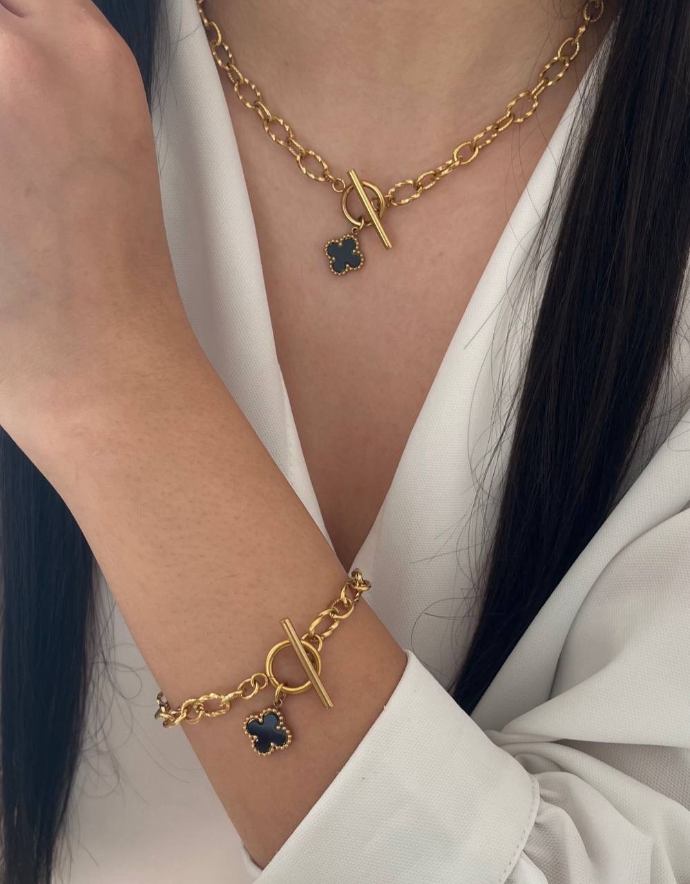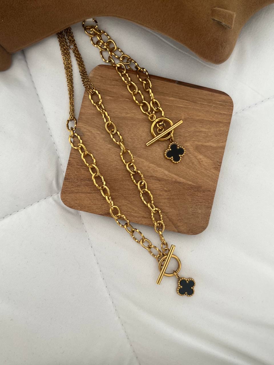 نیم ست زنجیری ونکلیف زنانه طلایی که از برند استیله و ضدابو رنگ ثابته.مناسب استفاده روزانه و بدون تغییر رنگ میباشد.
