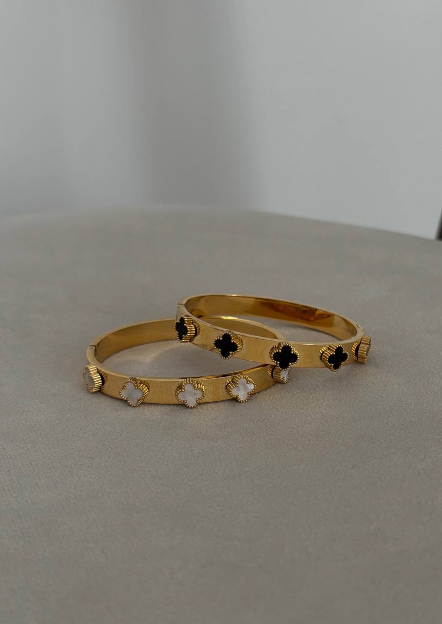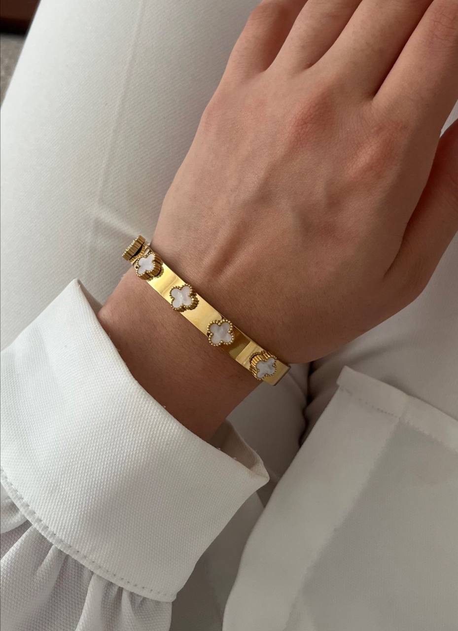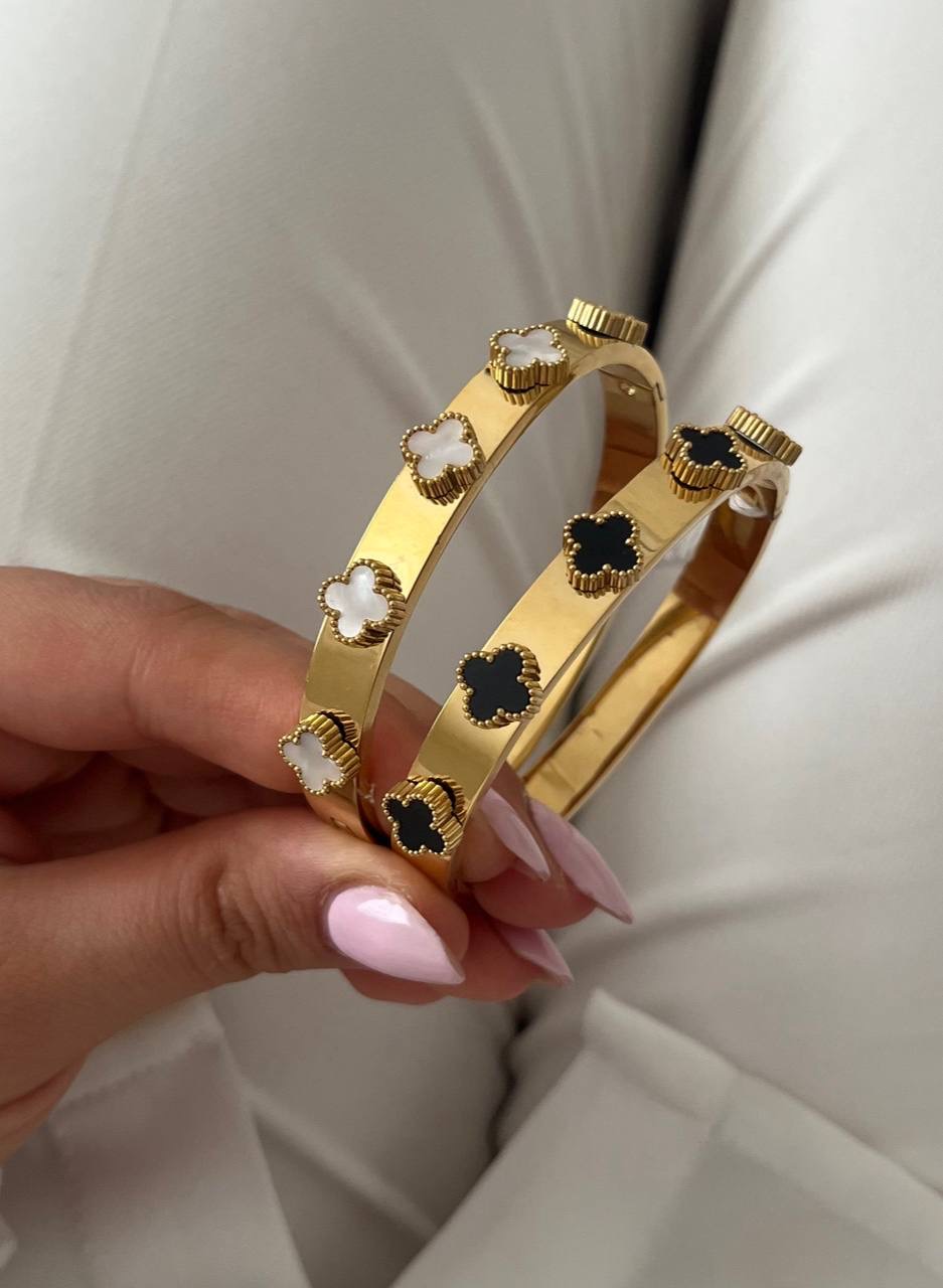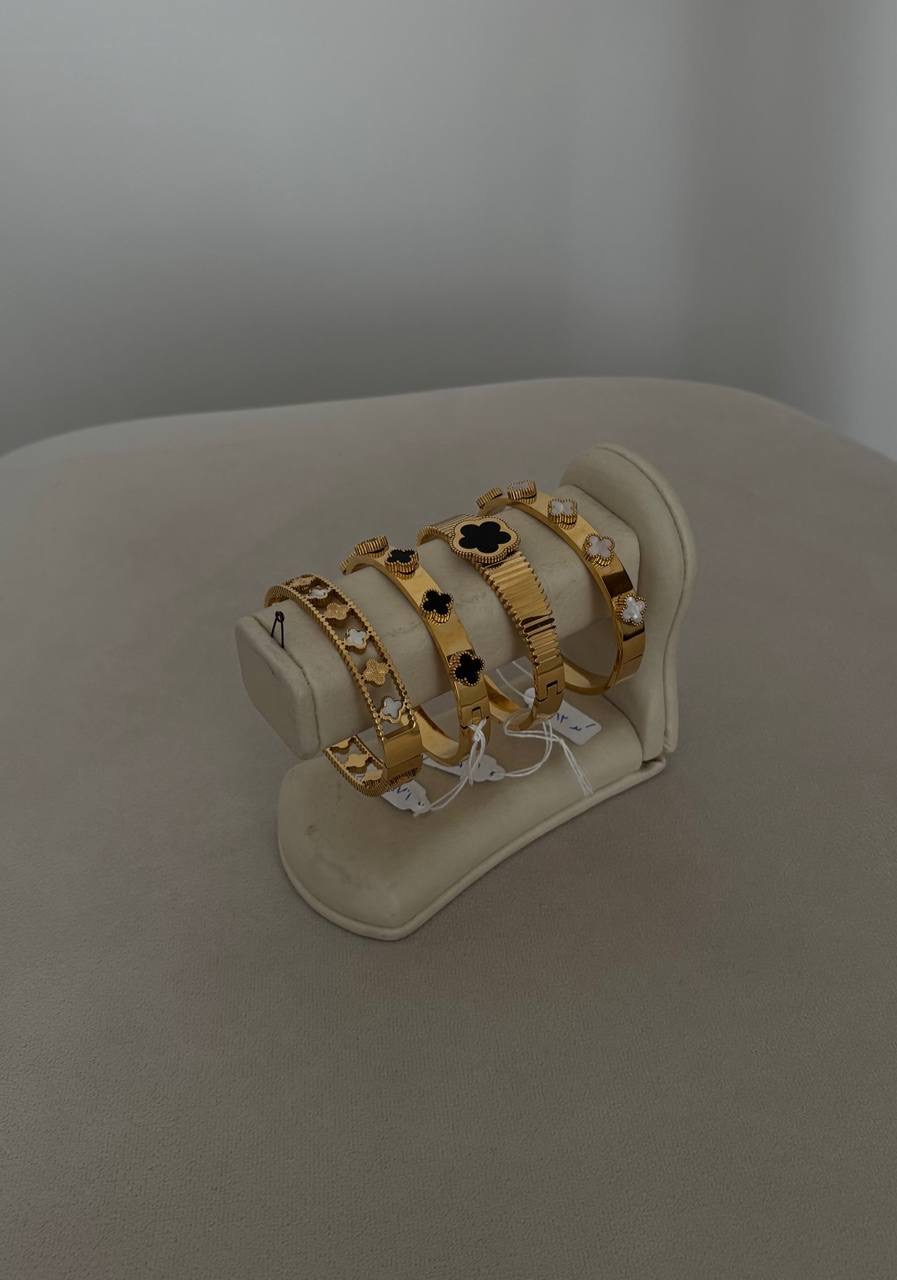 بنگل های ترند ونکلیفه میناکاری طلایی فول استیل که از بغل بازو بستمه میشن و مناسب مچ های ظریف تا متوسطن.مناسب استفاده دائم بدون هیچ تغییر رنگی.