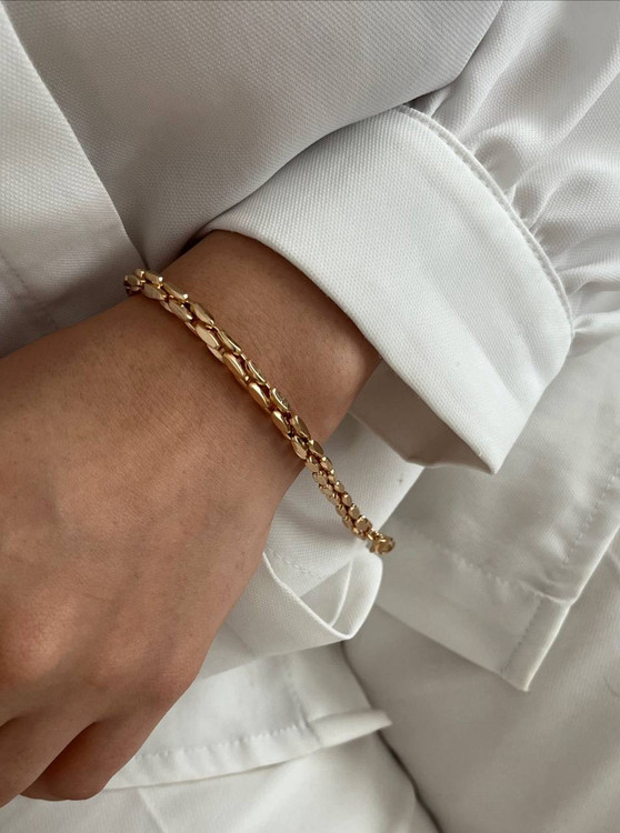 دستبندضخیم طنابی رنگ طلایی زنانه ازبرندژوپینگ.ضداب و ضدحساسیت.مشابه طلا و دارای 5سانت زنجیر سایز.مناسب استفاده روزانه و مهمانی.