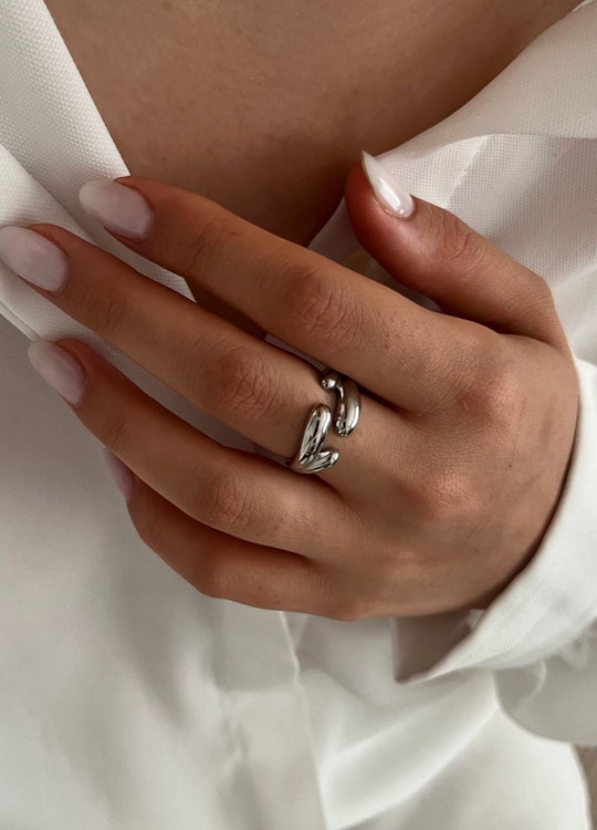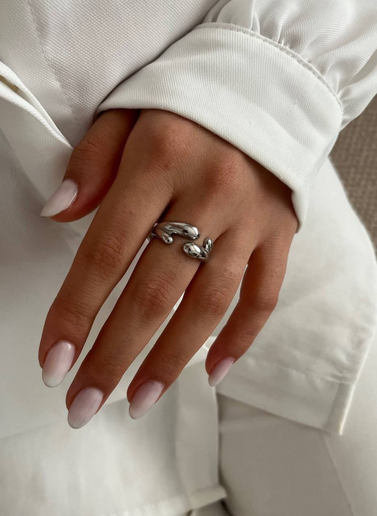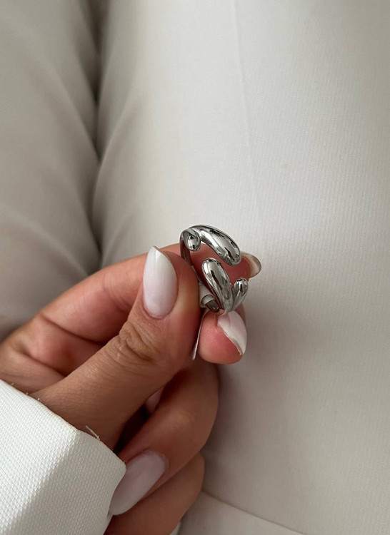 انگشترخاص دخترانه از برند استیل با رنگ سیلور.مدل انگشتر دفرمه میباشدو مناسب ست کردن با هراستایلی است.