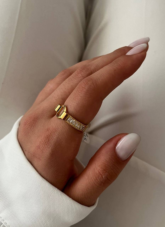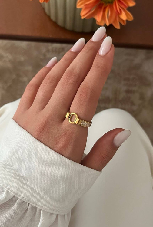 انگشتراستیل طلایی دخترانه که سبک خاص و مینیمالی دارد.استیل ضد اب و مناسب استفاده روزانه میباشد.مناسب ست کردن با هراستایلی میباشد.