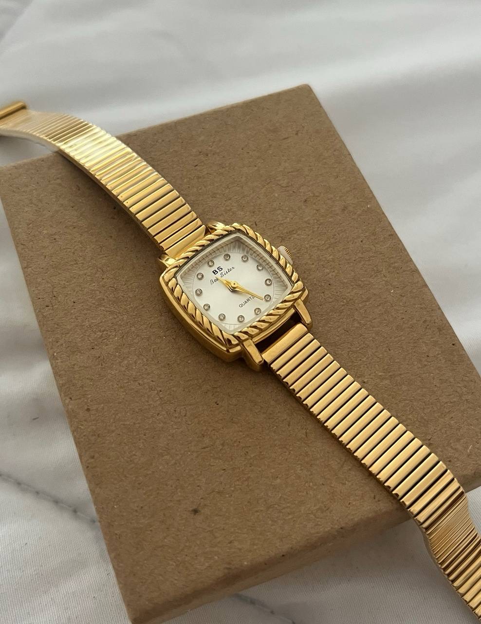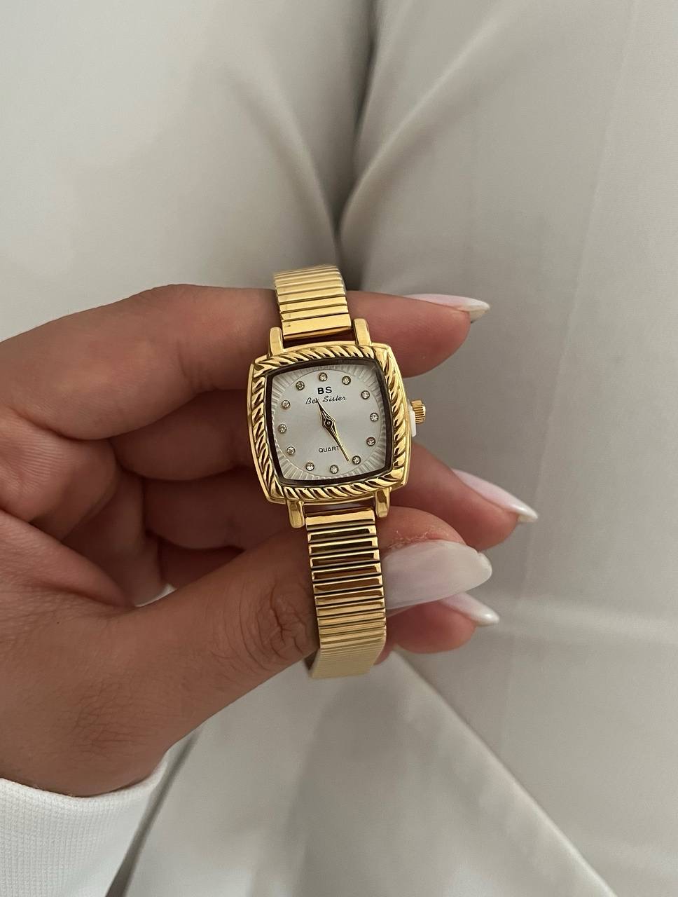 ساعت طرح کلاسیک زنانه با صفحه ای مربعی و رویه تمام استیل.بند ساعت قابل تنظیم دستی با نشانگر های نگینی و صفحه سفید.مناسب استفاده روزانه و مهمانی.قابل ست کردن با استایل های روزمره.