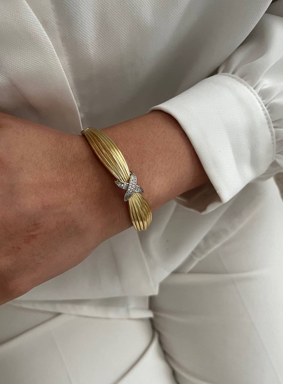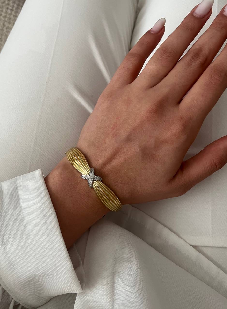 بنگل استیل طلایی دخترانه طرح دار که از بغل باز میشود.مناسب مچ های متوسط میباشد.قابل ست کردن با استایل های روزانه.