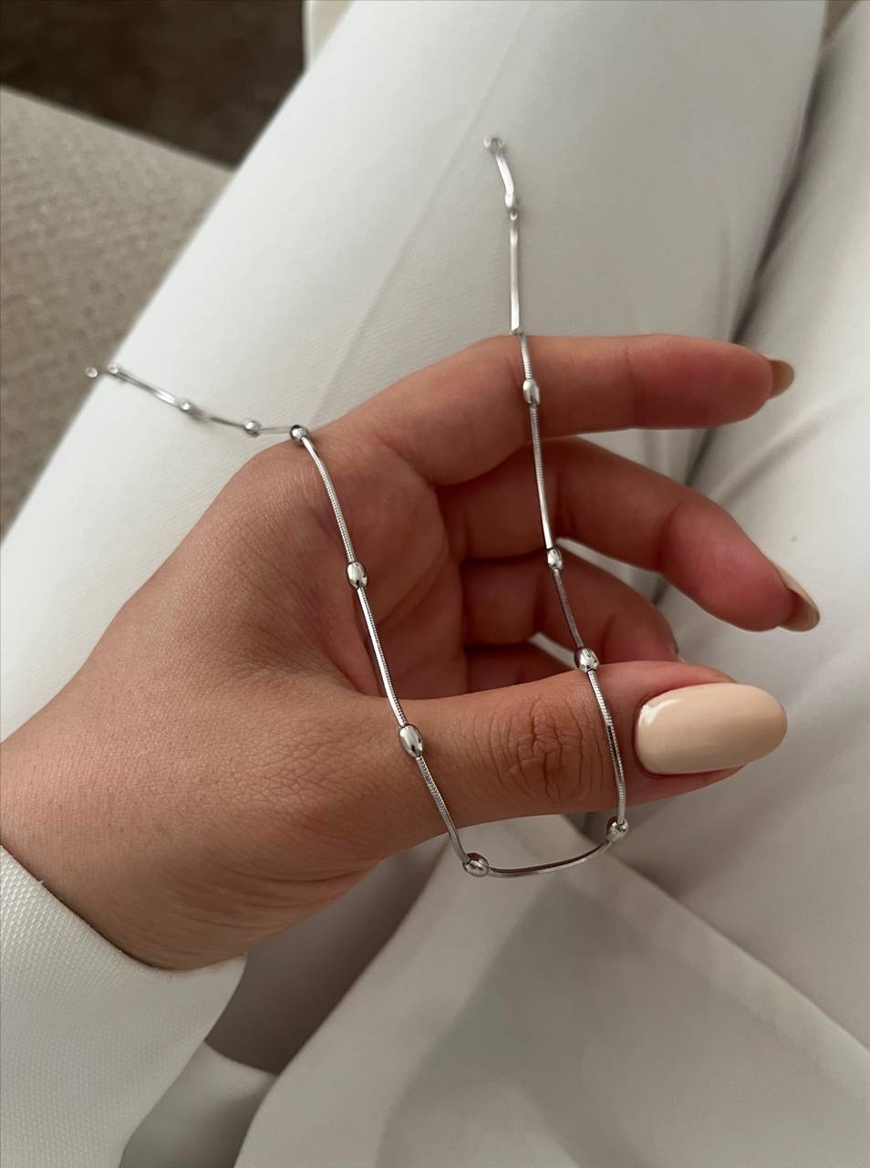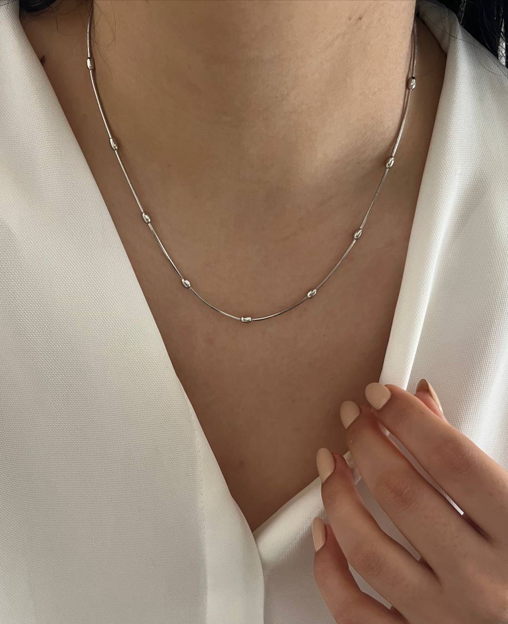گردنبند تک ردیف ساده دخترانه سیلور مدل توپی از برند ژوپینگ که ضداب و ضدحساسیت است.مناسب استفاده روزانه و بدون تغییر رنگ.قدان 45 سانت است.