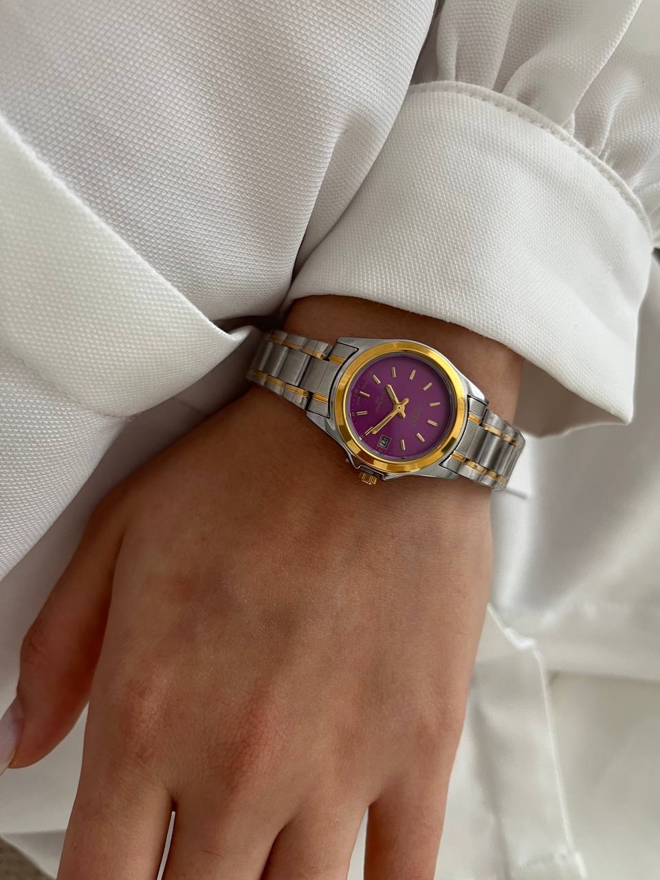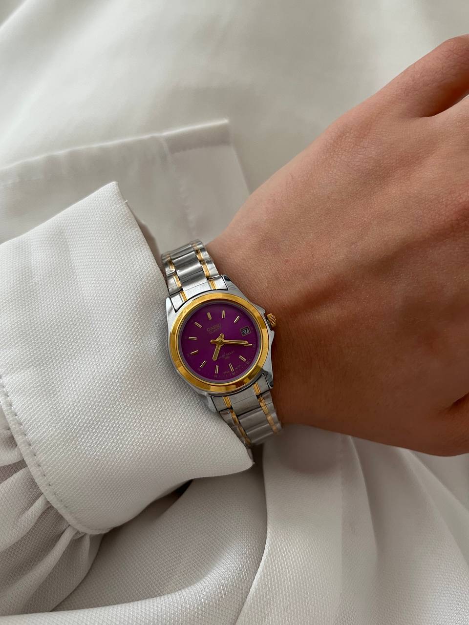 ساعت دخترانه صفحه رنگی گرد از برندcasio که فول استیل و ضداب و رنگ ثابت است.دارای قفل مخفی با حک برندروی ان.تاریخ دار است.قابل ست کردن با استایل های روزانه شما میباشد.بسیار راحت و سبک.کیفیت درجه یک.