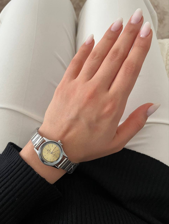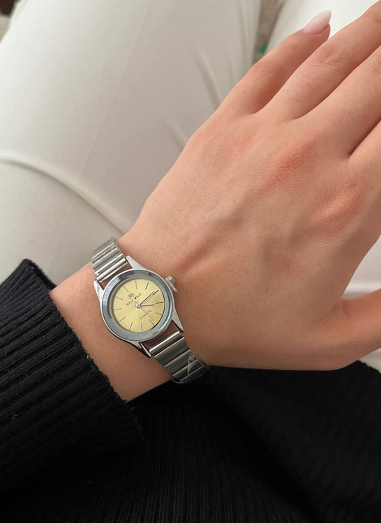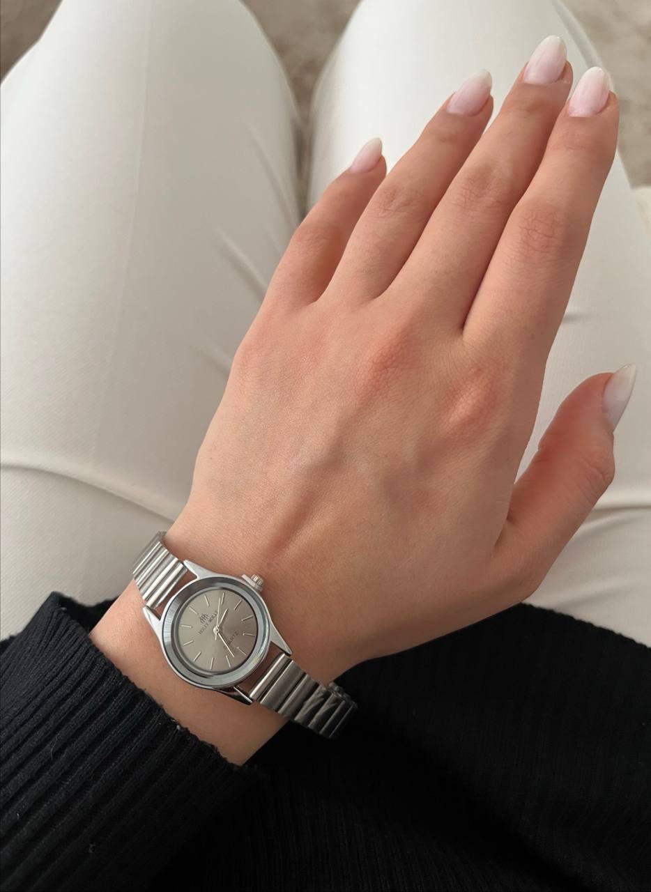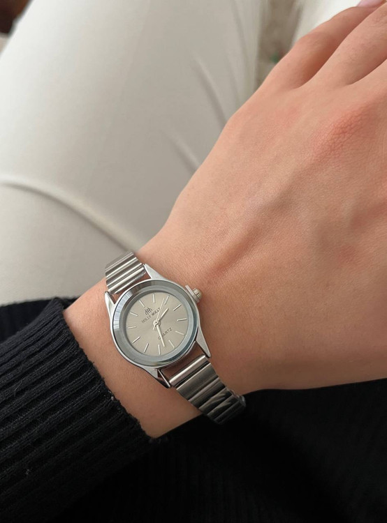ساعت صفحه گرد ریز رنگی ,بند کرکه ای استیل برند هولی مولی اصل سیلور زنانه.جنس قاب صفحه استیل و ضداب است.باتری کوارتز قابل تعویض.بند ان قابل تنظیم در منزل میباشد.صفحه ان بسیار ریز و مینیمال میباشد و یک انتخاب مناسب برای بانوان شیک پوش است.