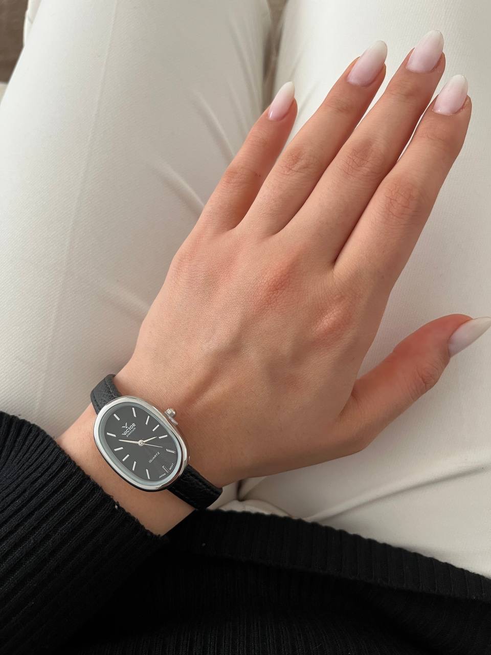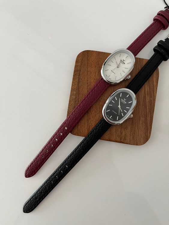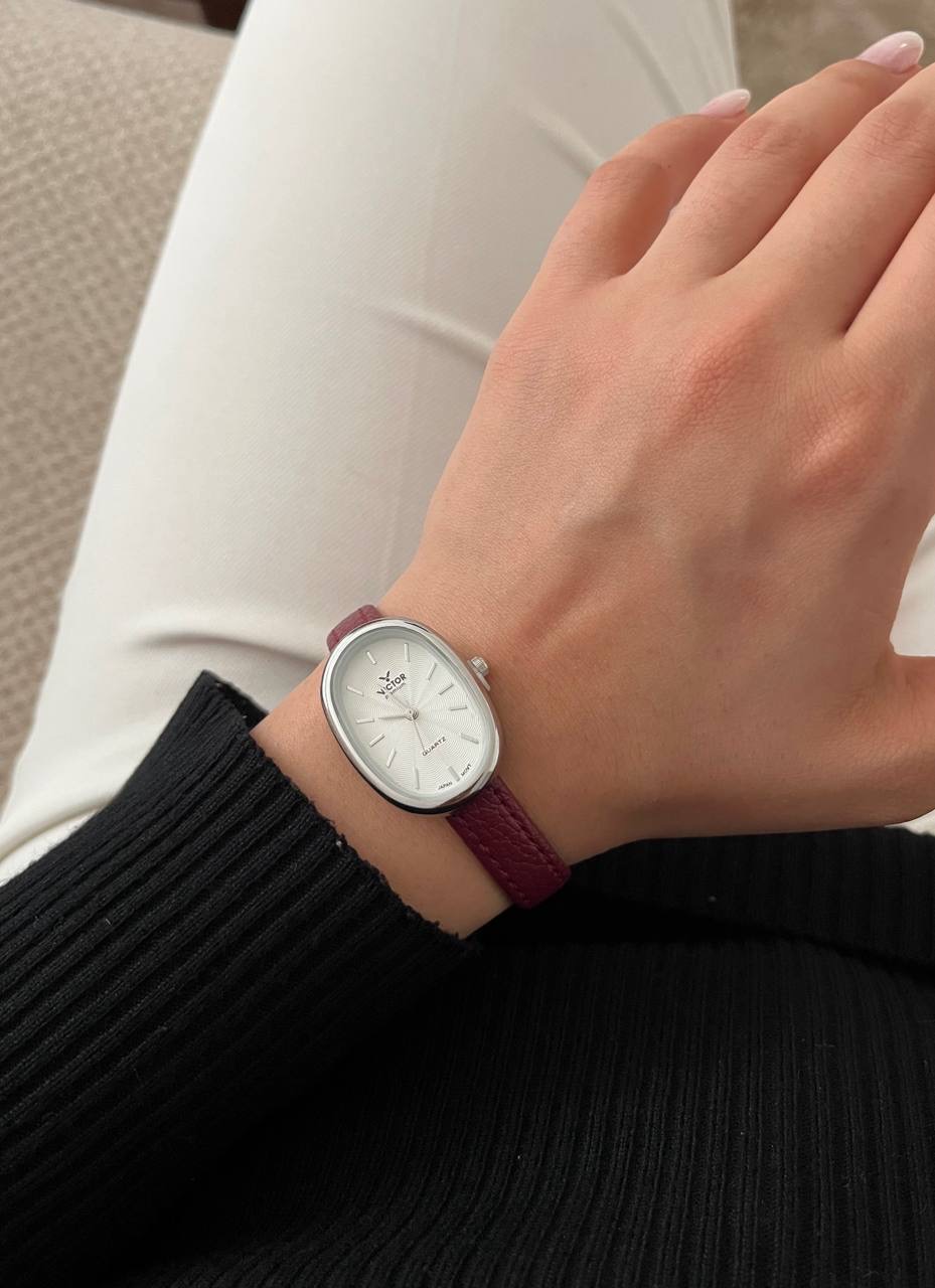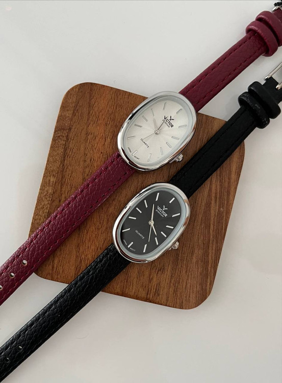 ساعت دخترانه بند چرم و صفحه استیل بیضی از برند ویکتور با باتری کوارتز.ساعت بسیار با دوام و خوش استایل است و مناسب بانوان خاص پسند میباشد.قابل ست کردن با استایل های روزانه میباشد.